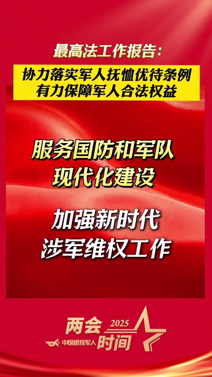 最高人民法院工作報(bào)告:協(xié)力落實(shí)軍人撫恤優(yōu)待條例,有力保障軍人合法...