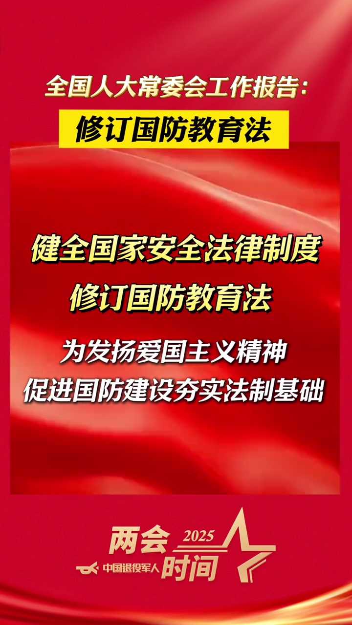 全國人大常委會(huì)工作報(bào)告:修訂國防教育法,為發(fā)揚(yáng)愛國主義精神、促進(jìn)...