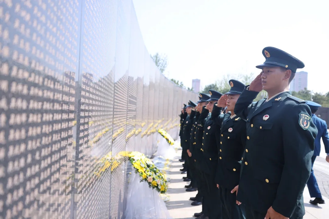 圖為參加安葬儀式的社會各界代表向烈士獻花致敬,并瞻仰烈士英名墻。曹舒昊?攝