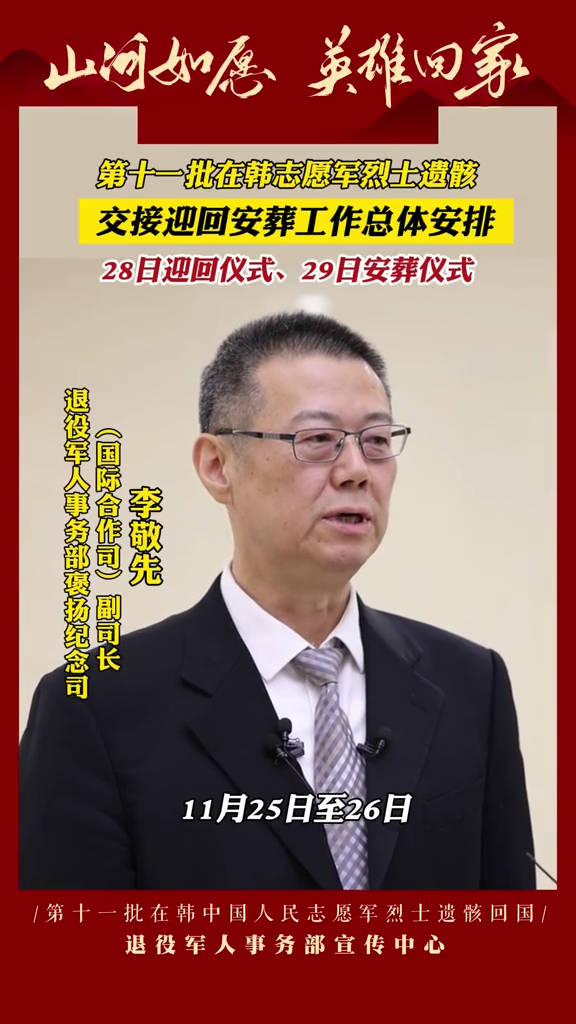 11月28日下午,國防部舉行例行記者會,國防部新聞局局長、國防部新聞發言人吳謙大校答記者問。,中韓雙方于11月28日交接第十一批在韓中國人民志愿軍...
