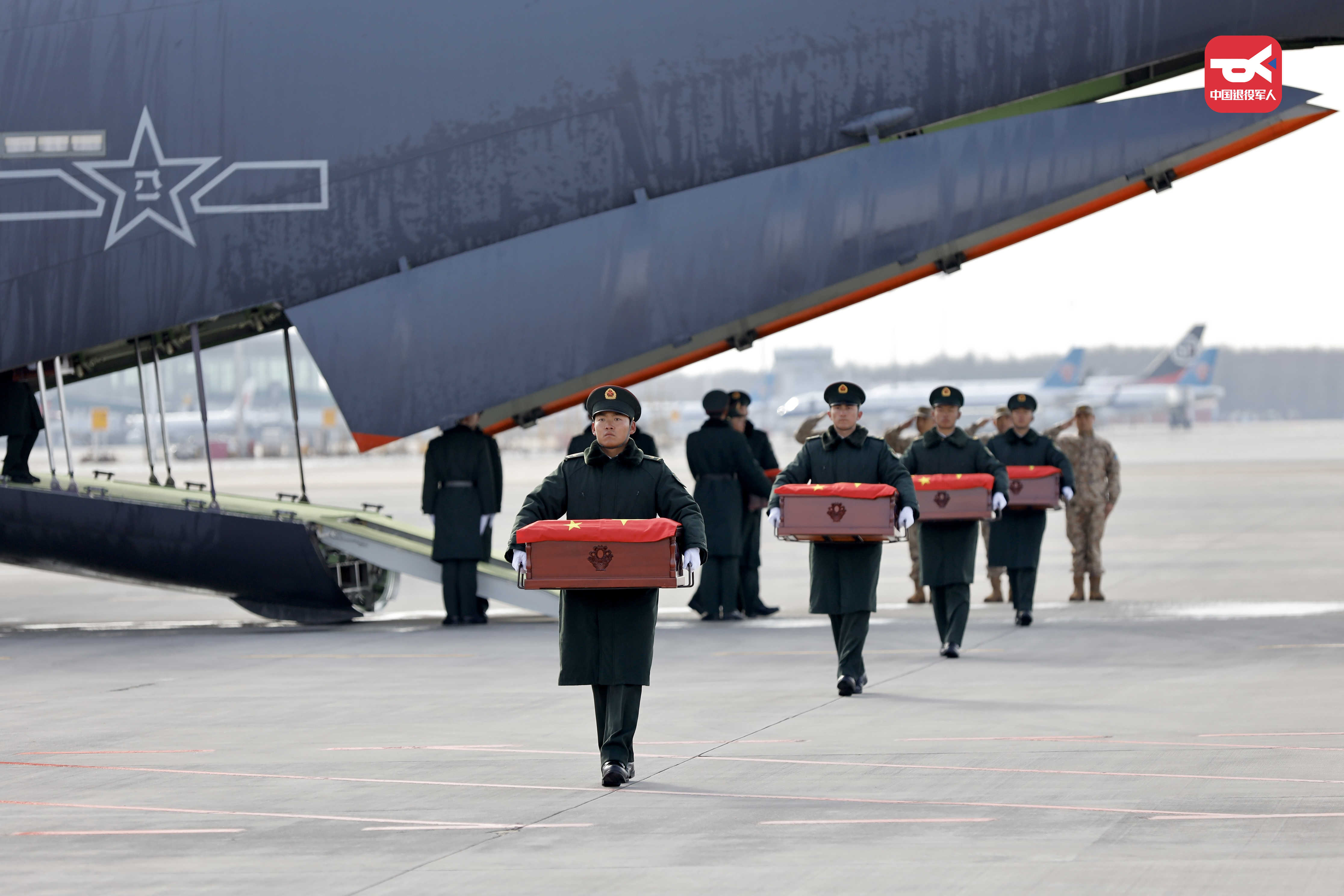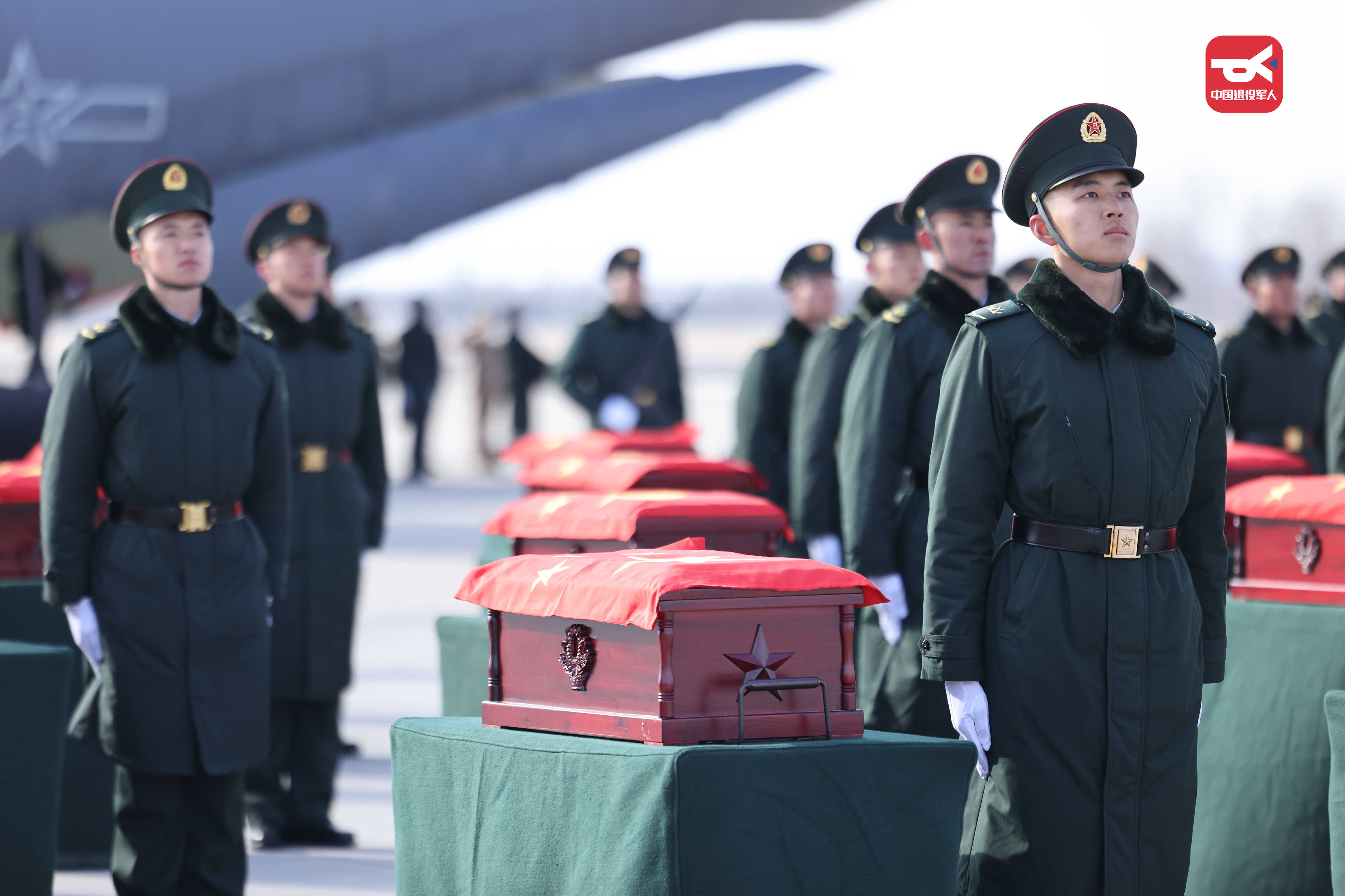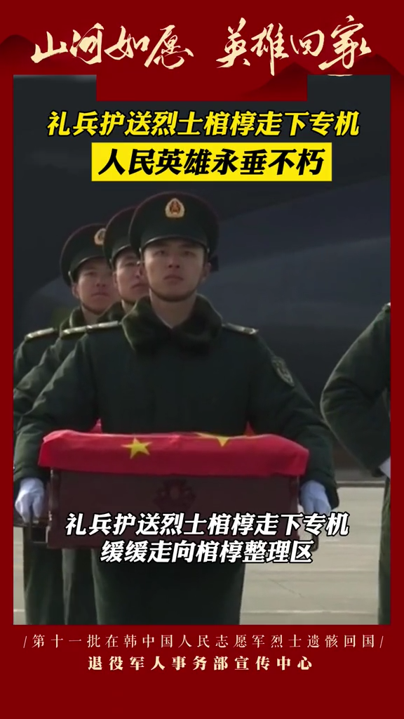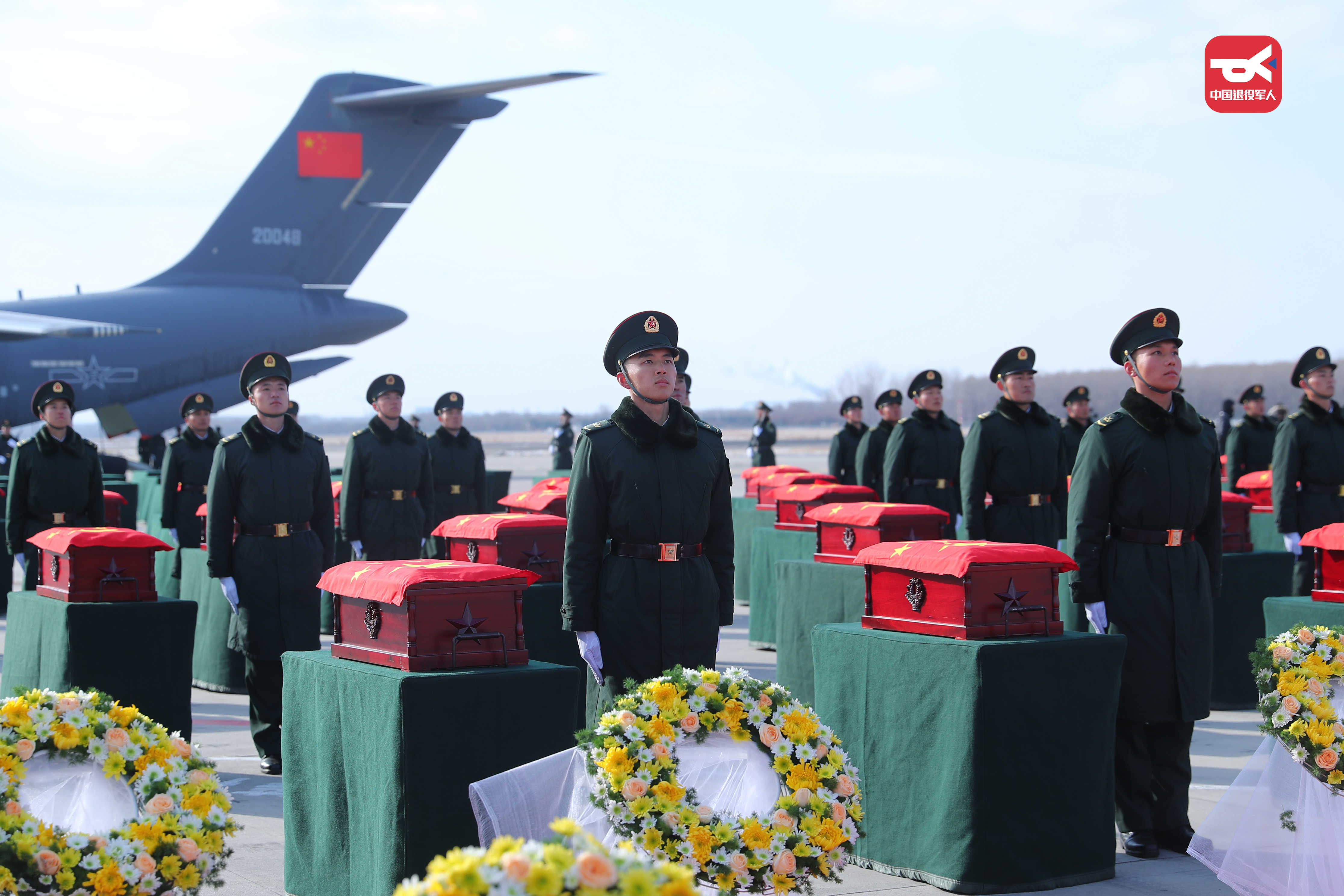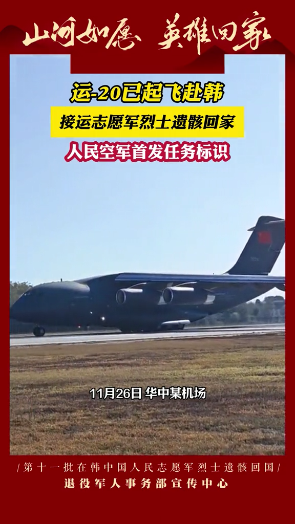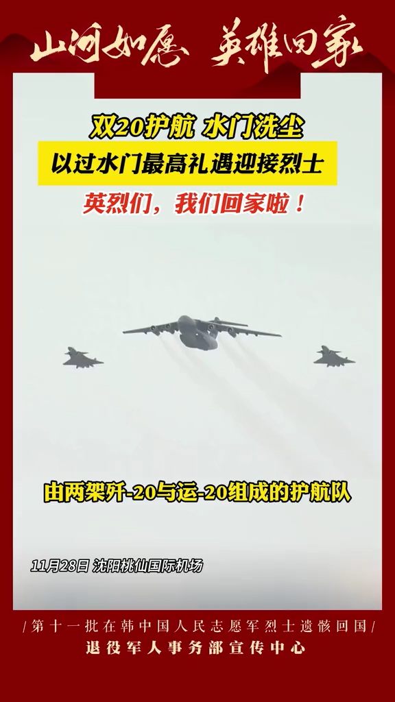 今天,43位志愿軍烈士回到了祖國懷抱 運-20迎接,殲-20護航 沈陽桃仙國際機場 以“過水門”最高禮遇迎接