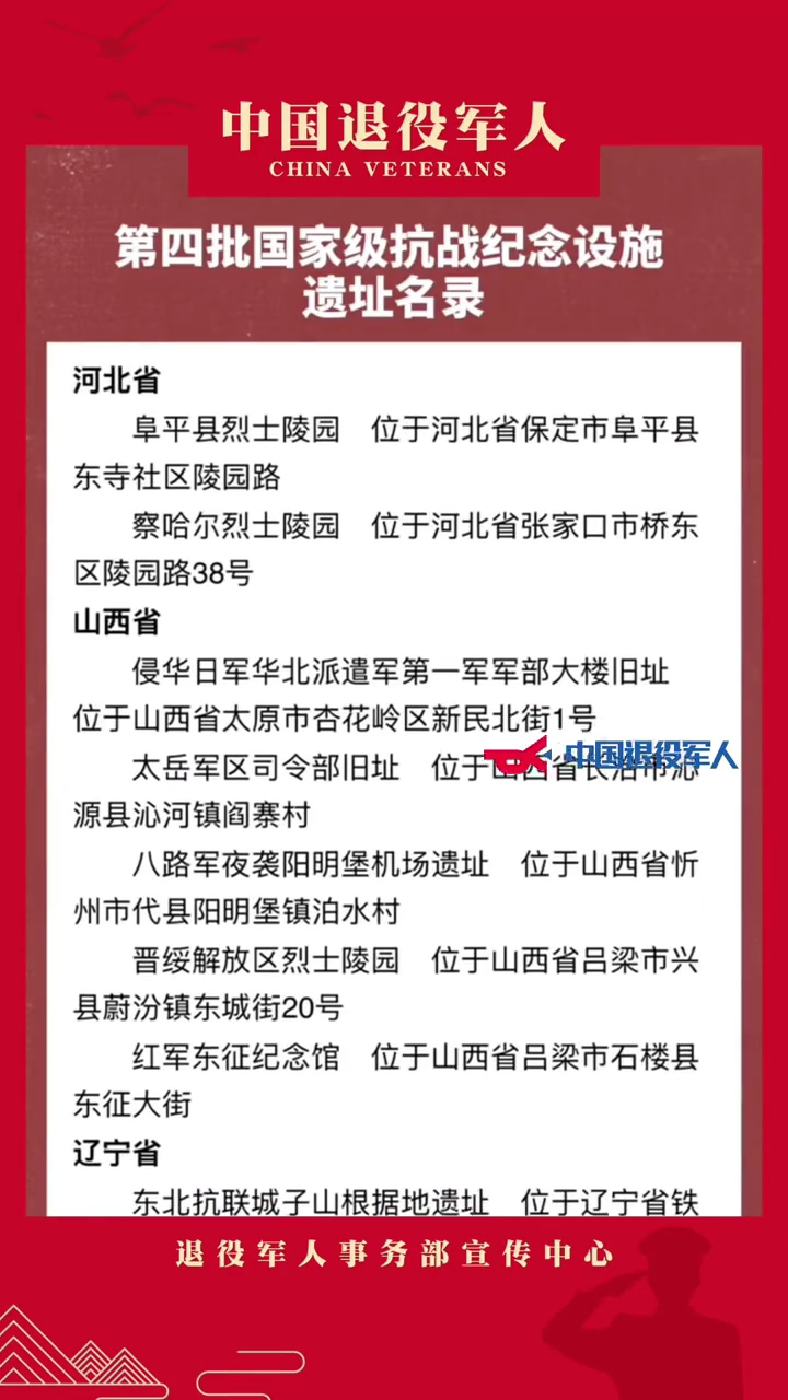 國家公布第四批國家級抗戰紀念設施、遺址名錄!