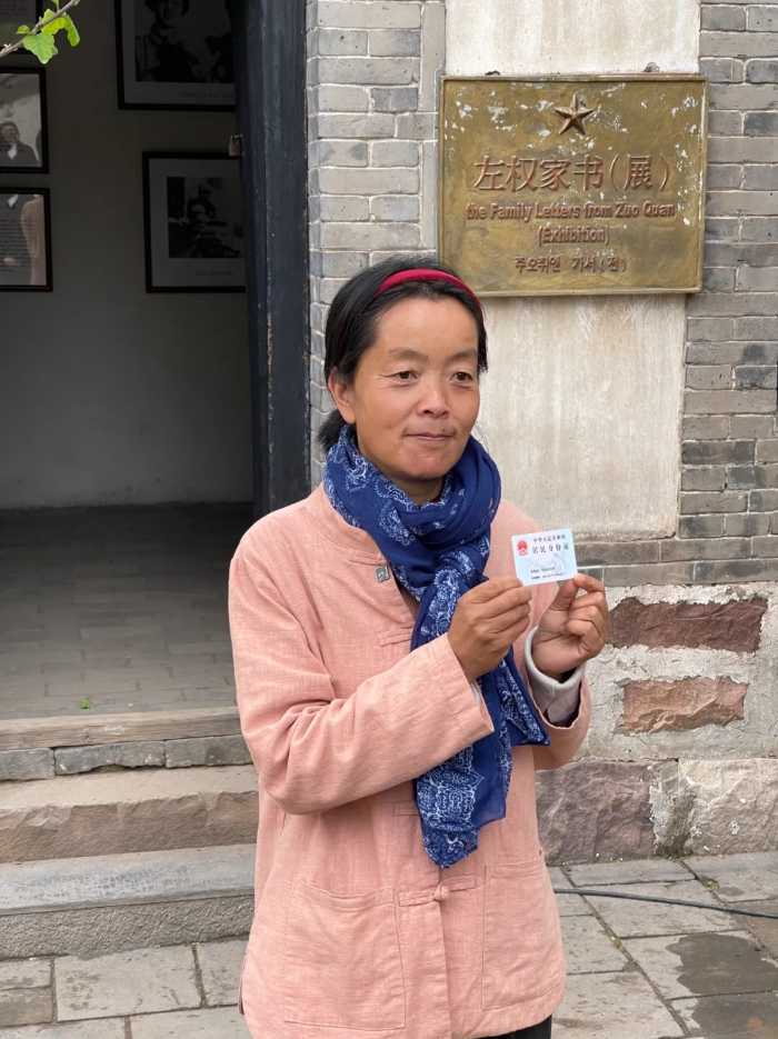 巨瓊瑛展示她的身份證上有將軍的名字。(新華網(wǎng) 于楊 攝)