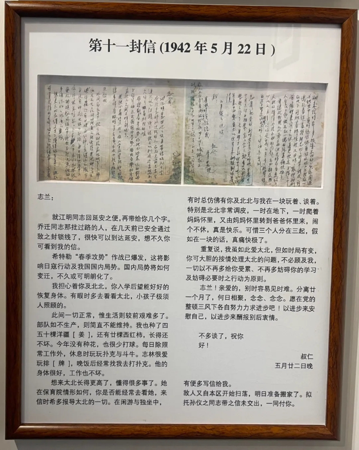 “前述郭述申同志帶給你的一包東西:有幾件衣服幾張花布一封信,聽說過封鎖線時(shí)都丟掉了,可惜那幾張不壞也還好看,想著你替小太北做成衣服后,滿可給小家伙漂亮一下,都掉了,這怪不得做爸爸的,只是小家伙運(yùn)氣太不好了。”