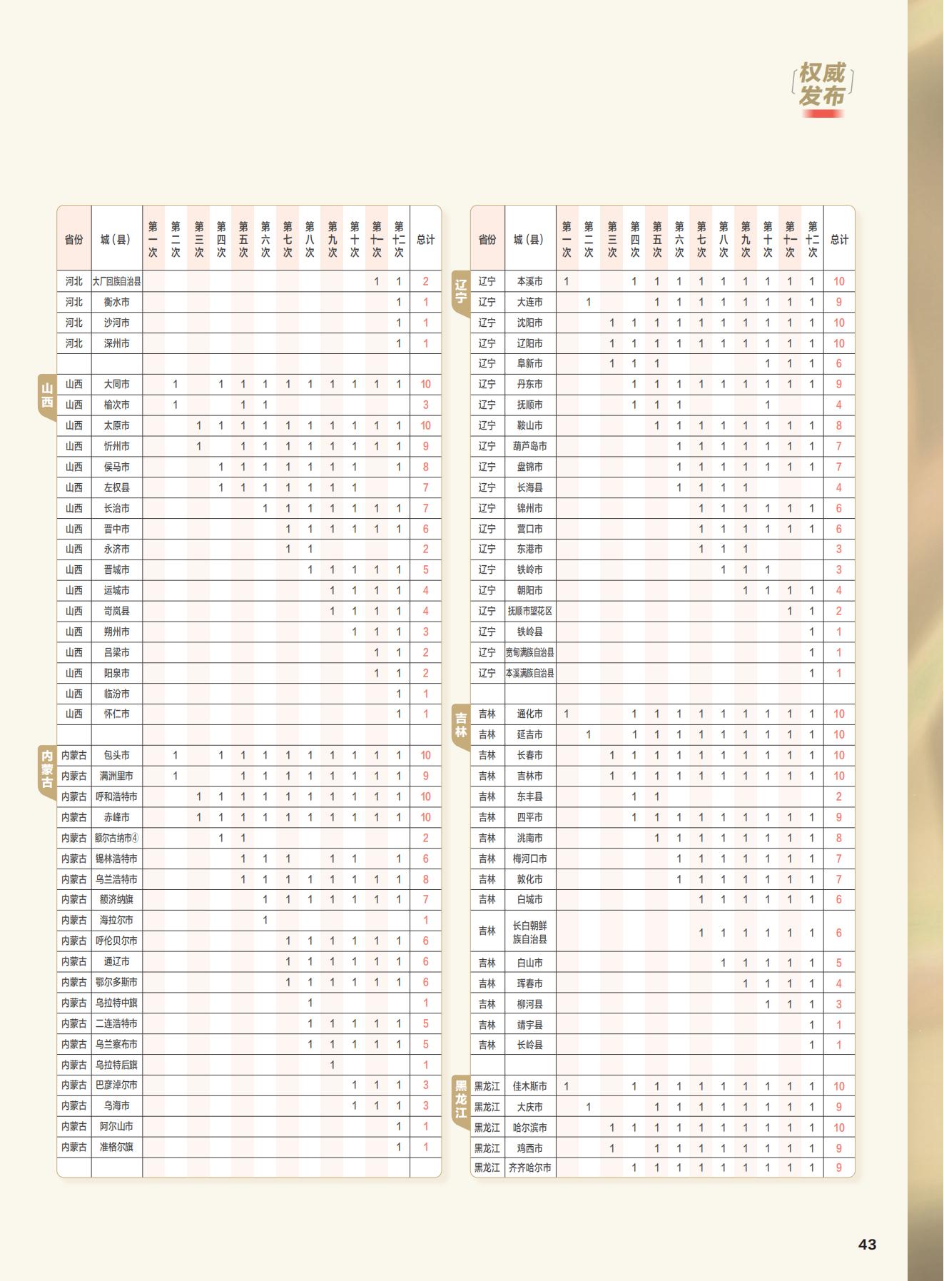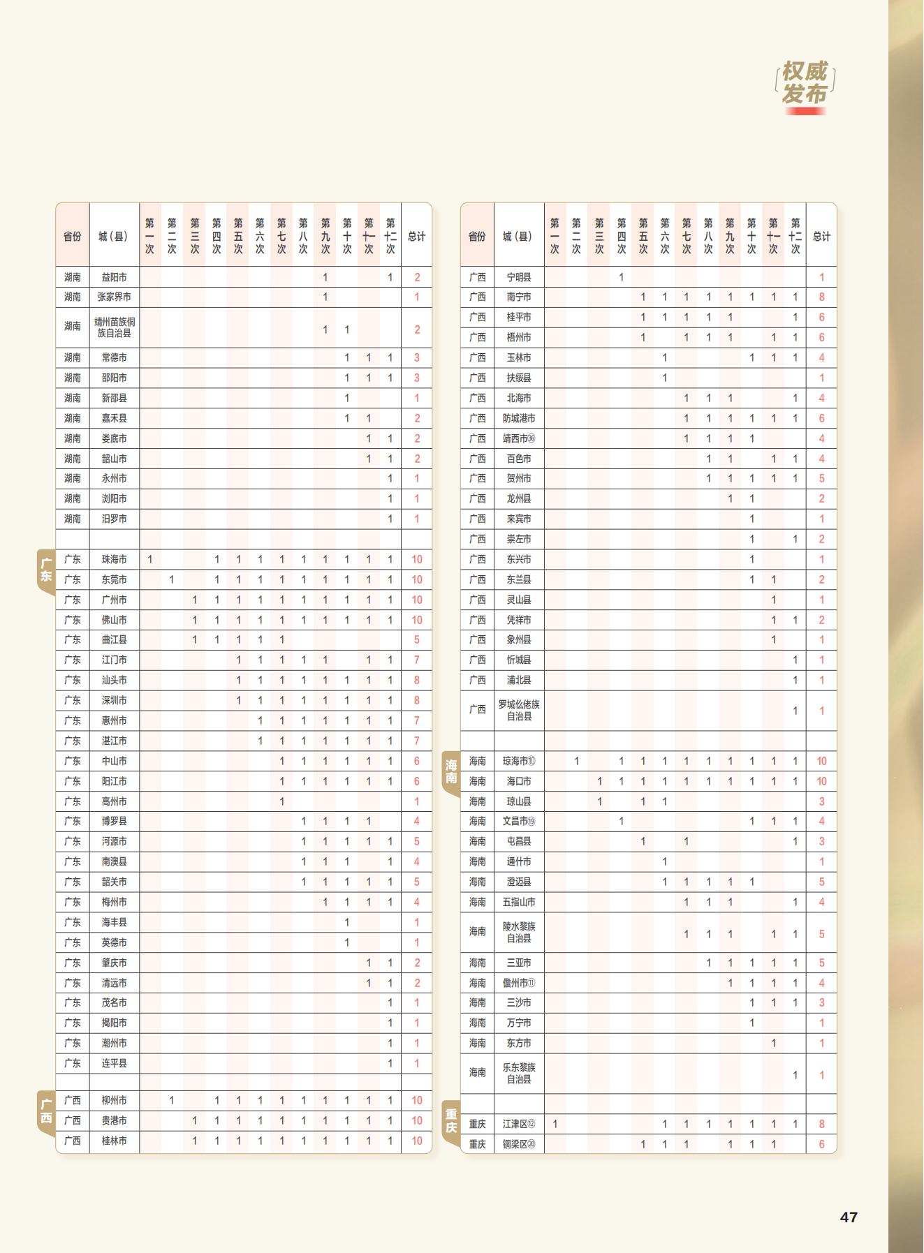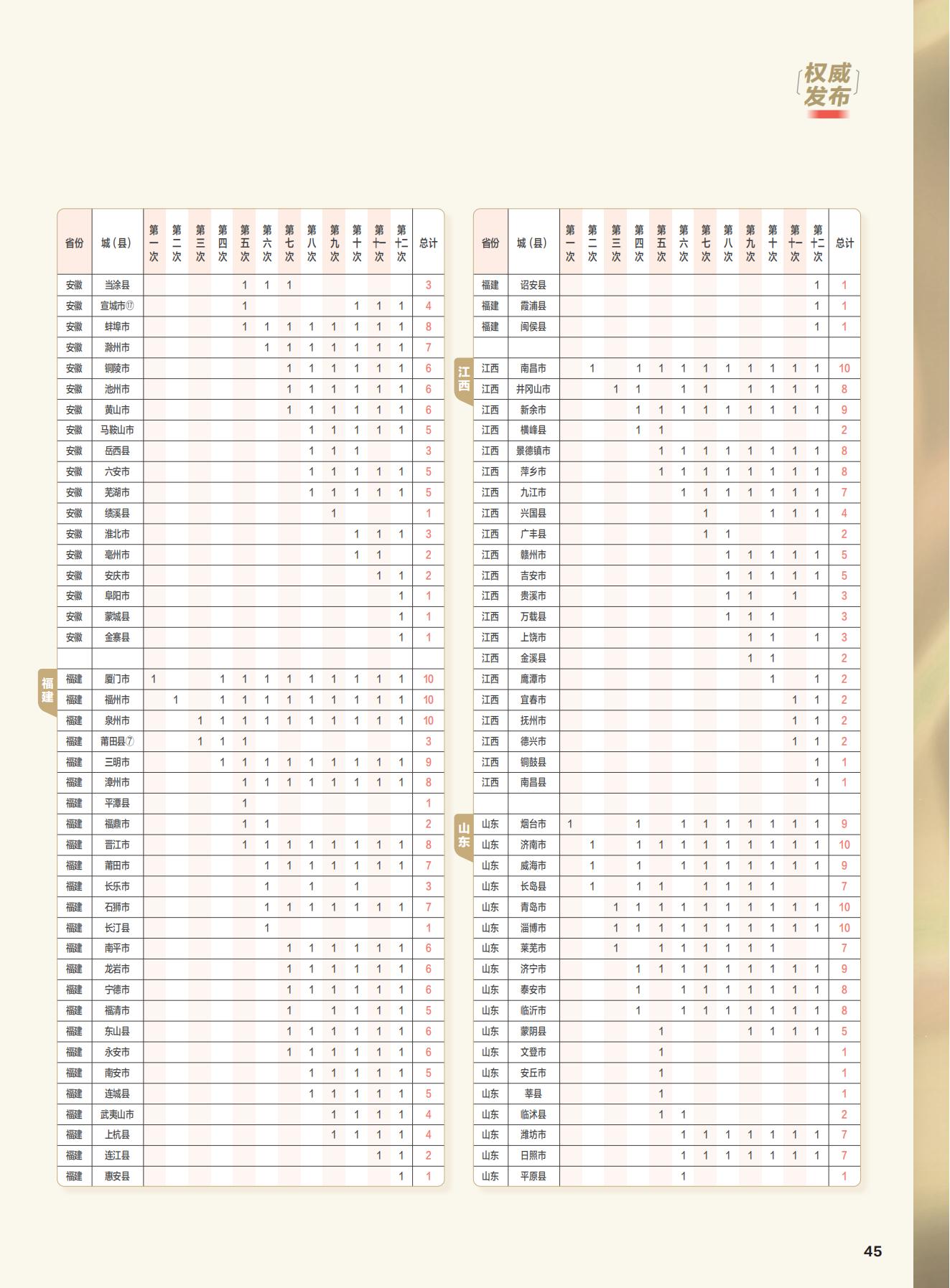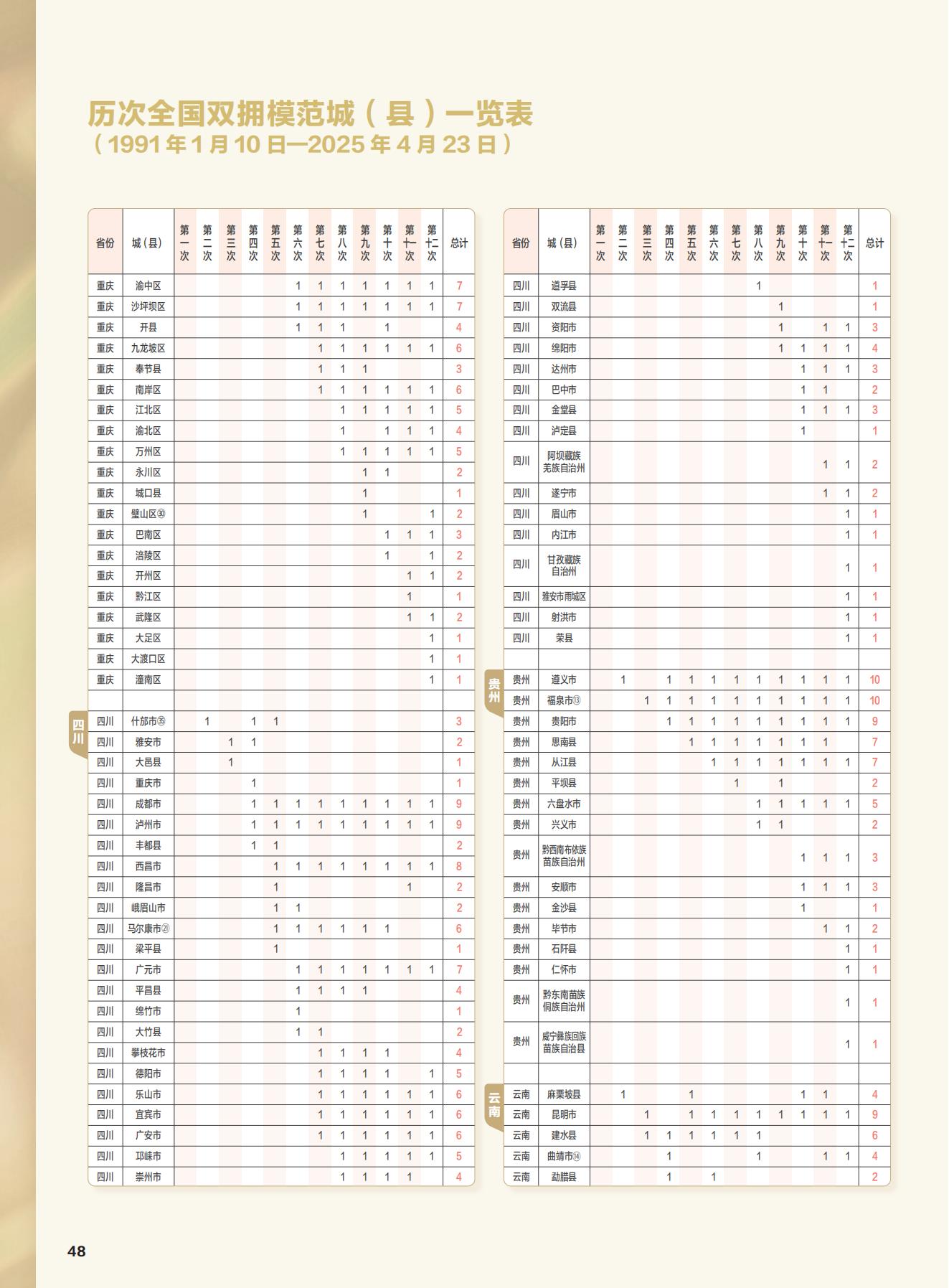 4月23日,新一屆全國雙擁模范城(縣)名單公布,全國雙擁模范城(縣)創建活動自1991年開展以來,已經進行了12輪命名。為進一步做好雙擁工作,激發軍地各級和廣大軍民參與雙擁工作的熱情,本刊將歷次命名集納成表。