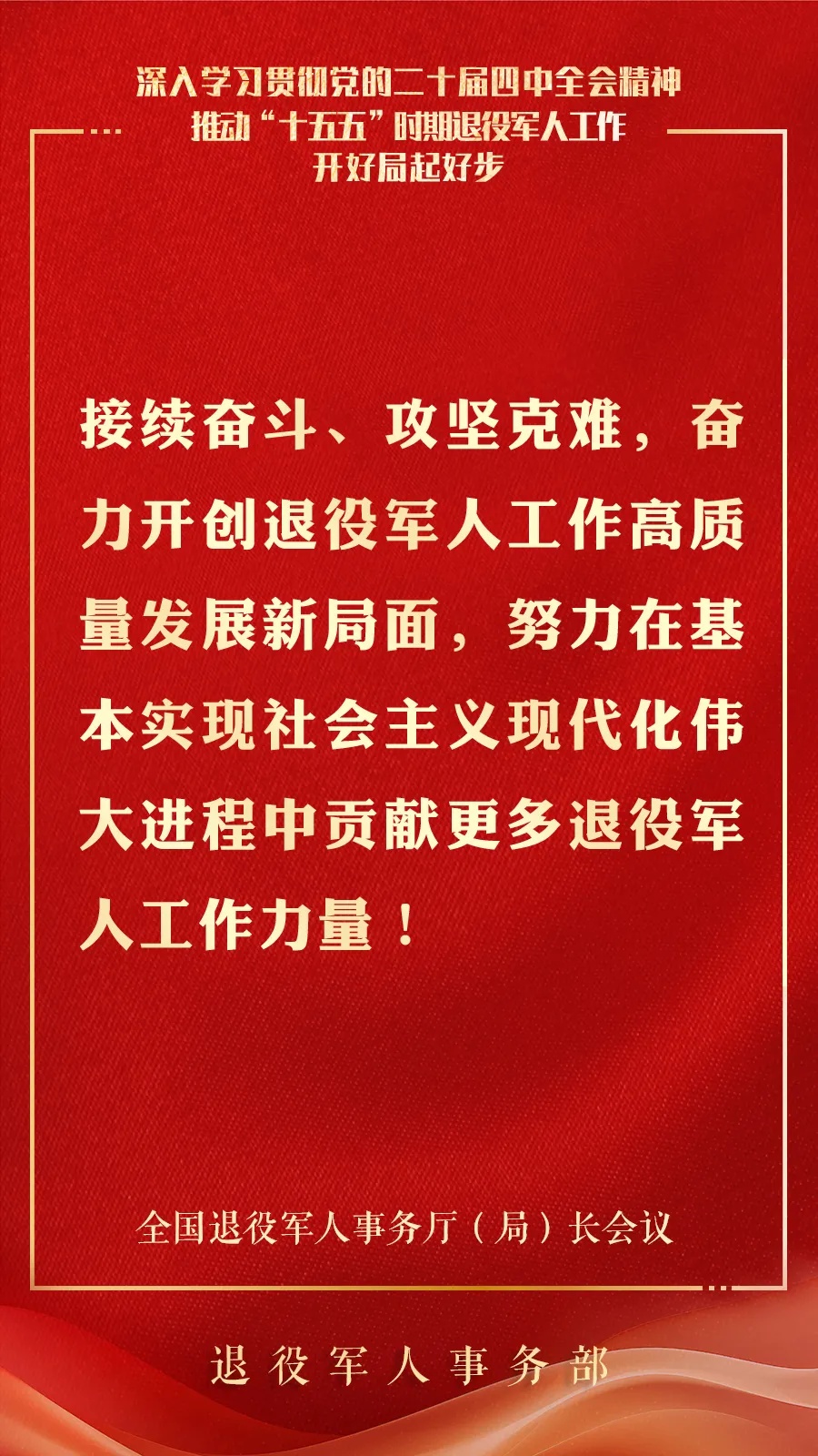 1月8日至9日,全國退役軍人事務廳(局)長會議在京召開。退役軍人事務部黨組書記、部長裴金佳出席會議并講話。現摘錄部分內容,予以刊發。