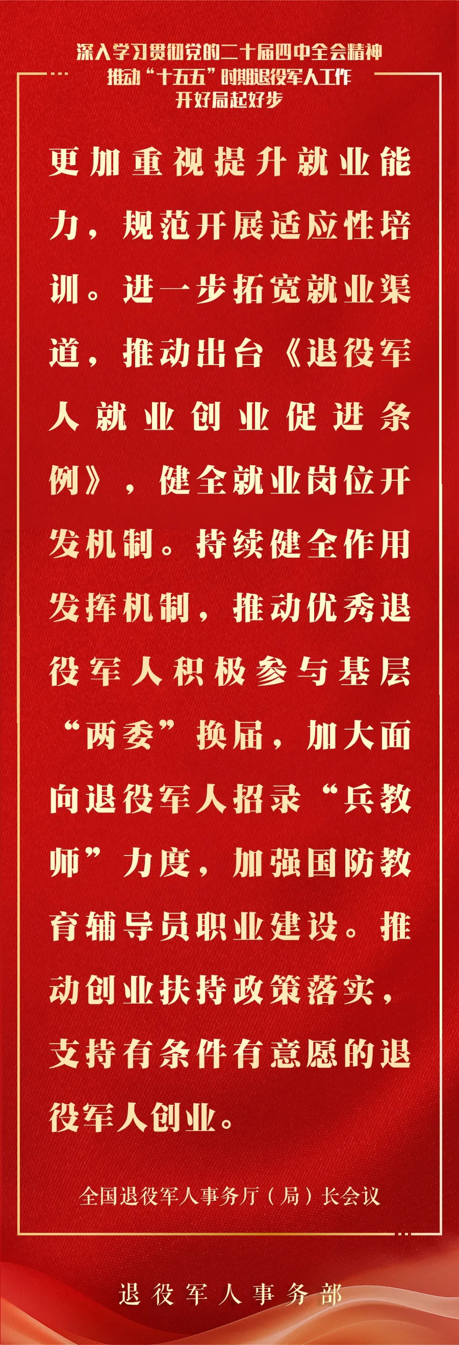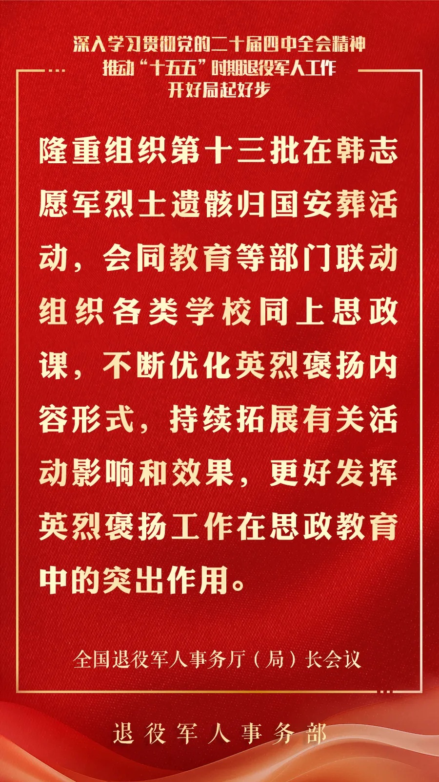 1月8日至9日,全國退役軍人事務廳(局)長會議在京召開。退役軍人事務部黨組書記、部長裴金佳出席會議并講話。現摘錄部分內容,予以刊發。