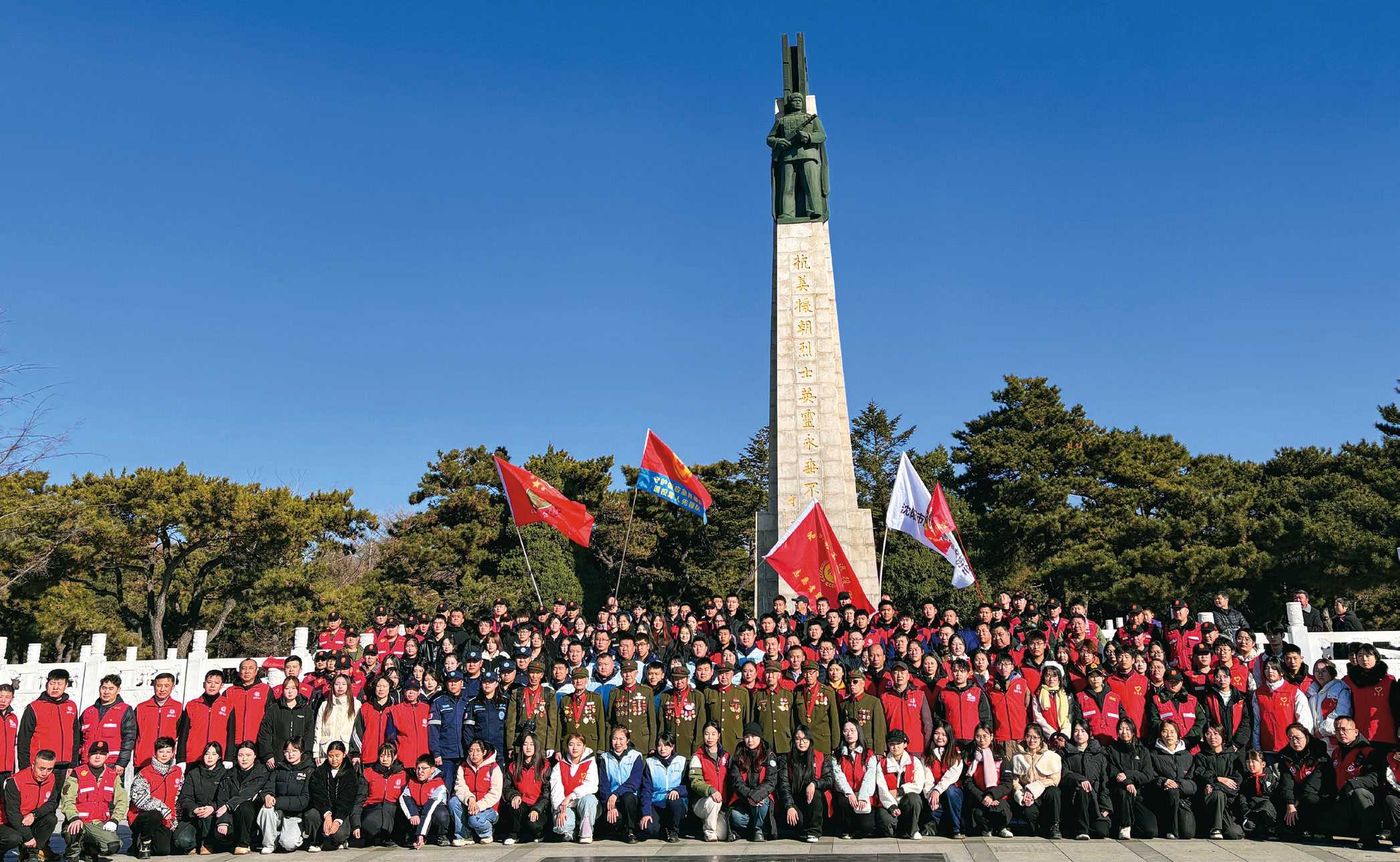 “沈陽(yáng)老兵”學(xué)雷鋒志愿服務(wù)平臺(tái)志愿者在清掃沈陽(yáng)抗美援朝烈士陵園后合影。?姚振蜂?攝